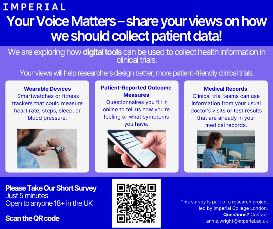 Annie is a PhD student at the Imperial Clinical Trials Unit. She is researching ways to make clinical trials easier, faster, and more patient-friendly. This survey is an important part of her research.